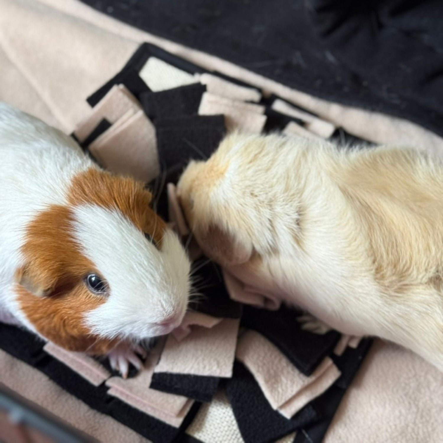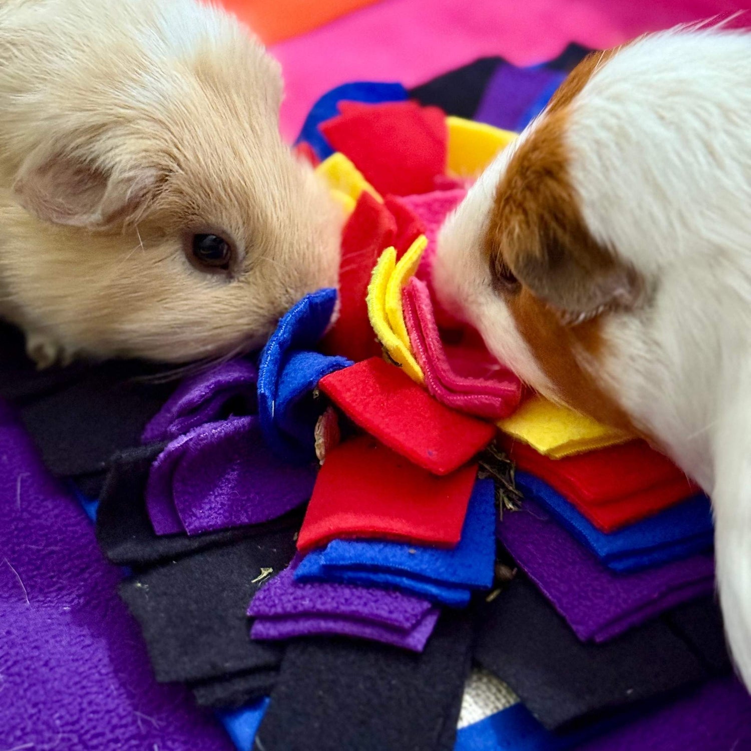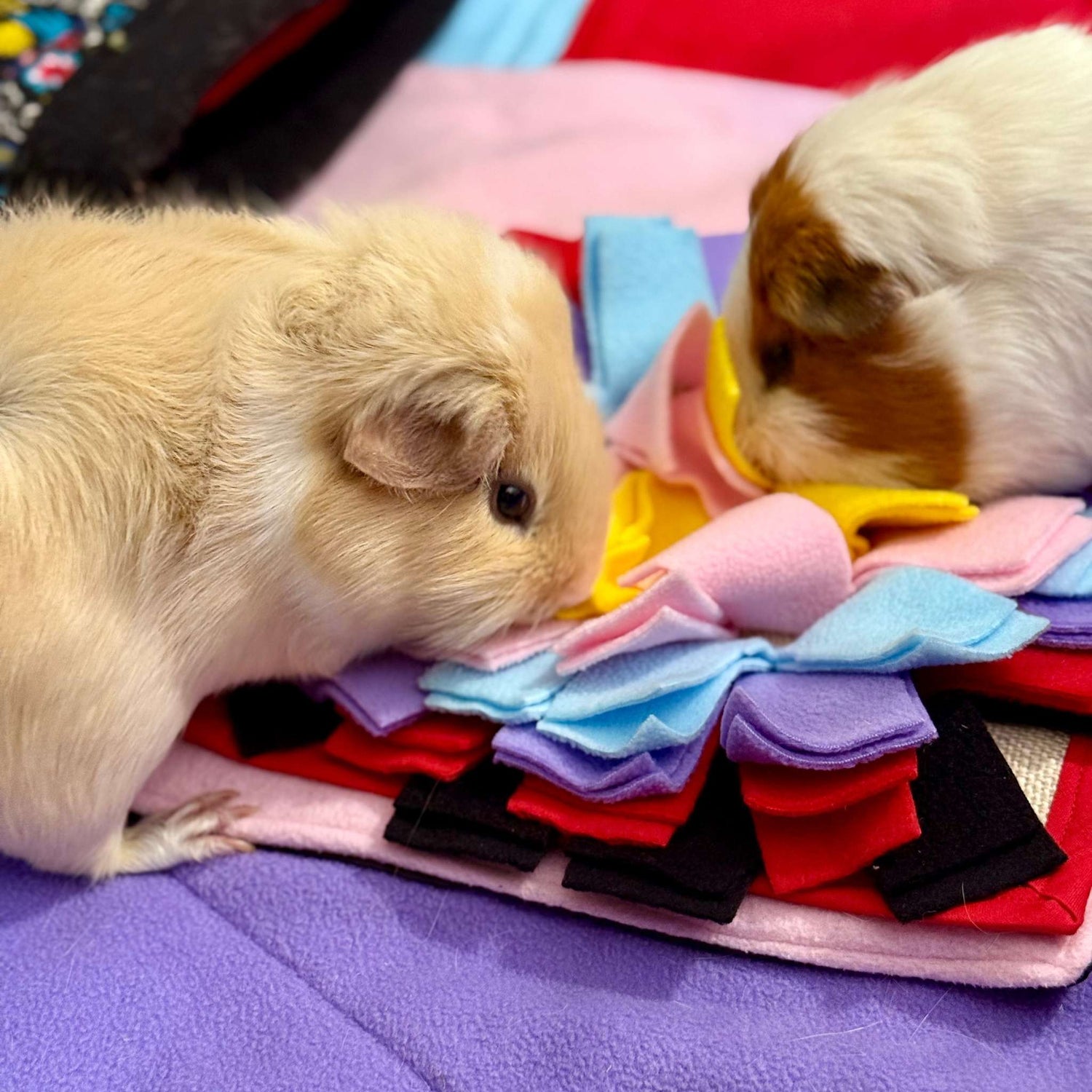 Snuffle mats bring out your guinea pig’s natural foraging instincts. Hide pellets, herbs, or veggies in the fleece strips and watch them sniff, rummage, and discover with delight.